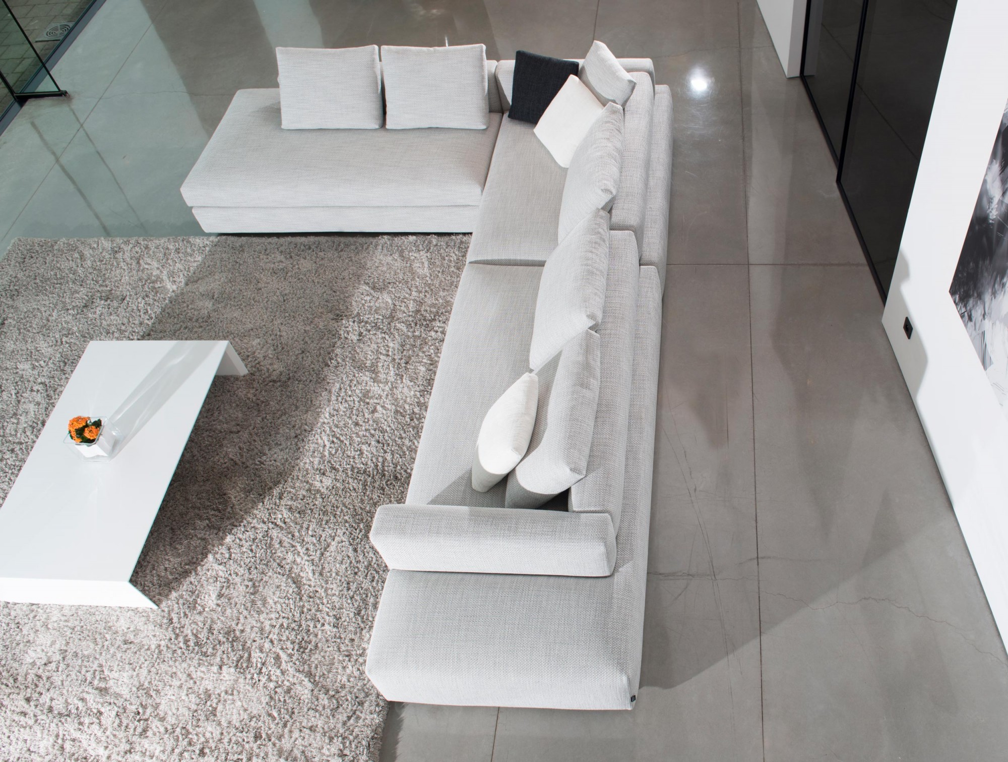The asymmetrical design immediately gives this model its own character with a very luxurious look. The designer has also taken into account the back of the sofa couch, because of this special finish, this sofa can also be placed in the center of the the room. This also connects the residential functions to a harmonious unity. In addition to the excellent seating comfort, this model was also finished to perfection.