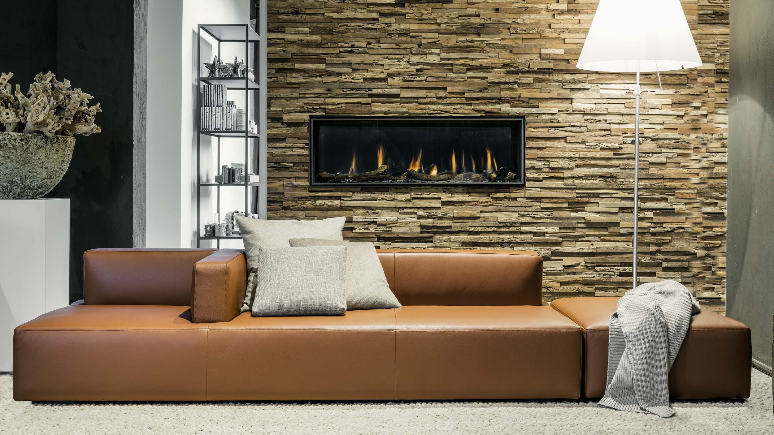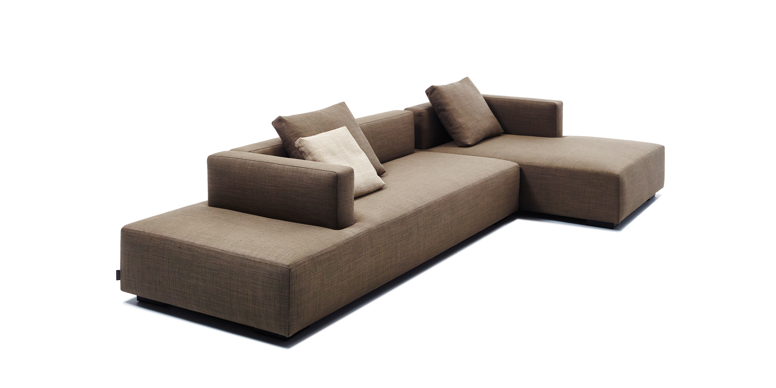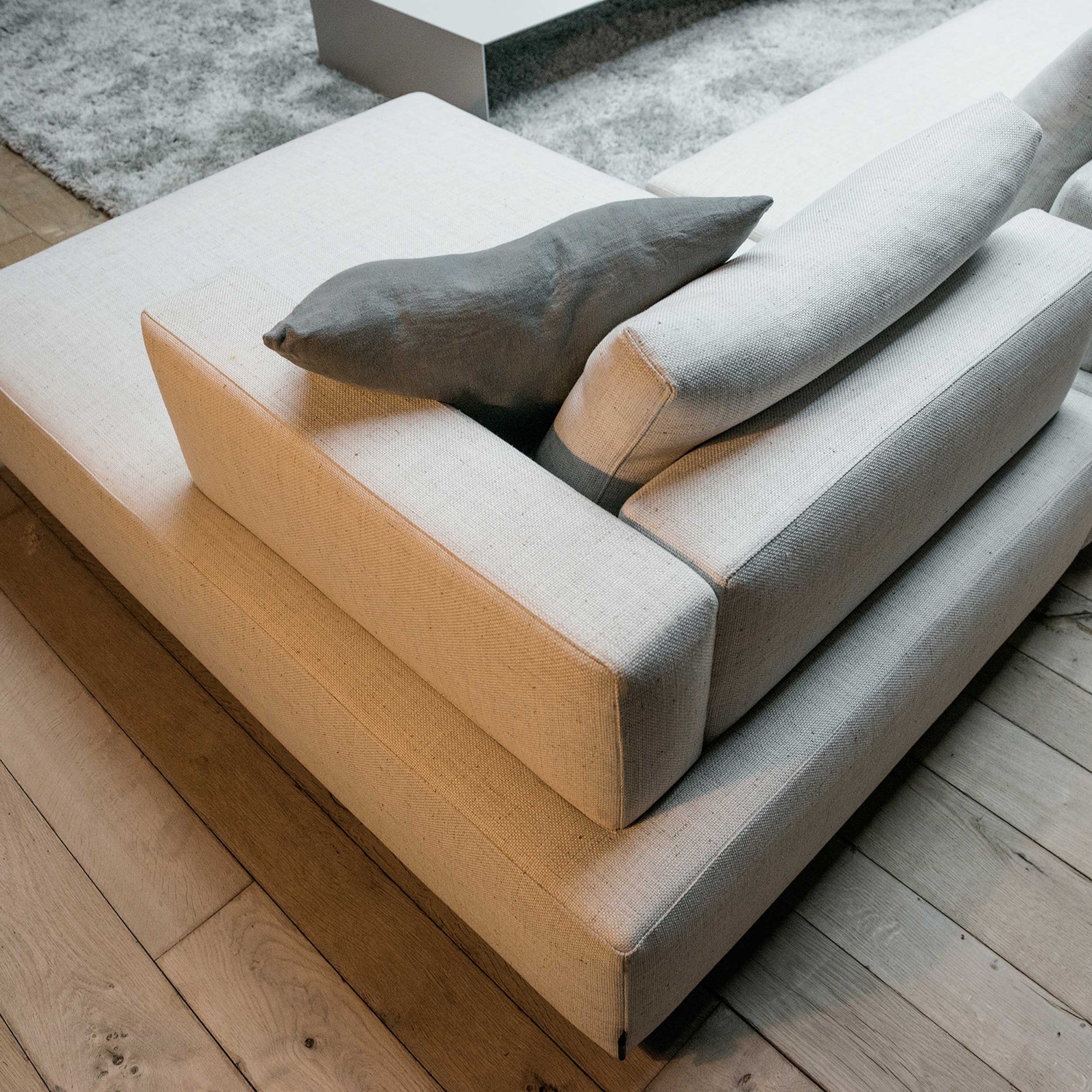 Dieses Lounge Sofa bringt die Erneuerung durch die Offenheit des Designs, es verbindet die Bereiche und kann durch seine außergewöhnliche Verarbeitung der Rückseite auch mitten im Raum stehen.